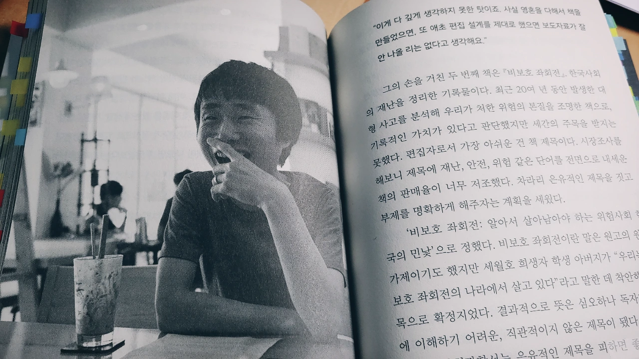 “이윤 추구가 1번이에요. (중략) 책이 팔려야 저 스스로도 일을 제대로 잘해낸 것 같은 생각에 뿌듯하고, 또 회사에서 직원들이 제대로 급여 받고 복지를 누릴 수 있으니까요.” “책을 볼 때 장점 위주로 보면서 나라면 이 책의 장점을 이런 방향으로 더 잘 살렸을 것 같다, 이렇게 생각하는 연습을 많이 해보는 게 중요해요.”