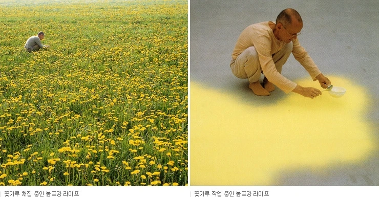 미술을 전공한 선생님, 명상지도자이신 어머니의 영향으로 이를 결합한 미술명상을 생각하게 되었다고 하셨다. 사실, 그림명상이라는 말을 들었을 땐, 그림 작품들을 보면서 명상을 하는 건가 싶었는데. 그것보다는 자연이나 명상수행에 가까운 작가들을 소개해주시는데 더 많은 시간을 할애하셨다. 수행을 하는 마음으로, 그리고 자연과 가까워지려는 마음으로 작품 할 동을 한 박서보, 최영욱, 볼프강 라이프, 피터문 등등.