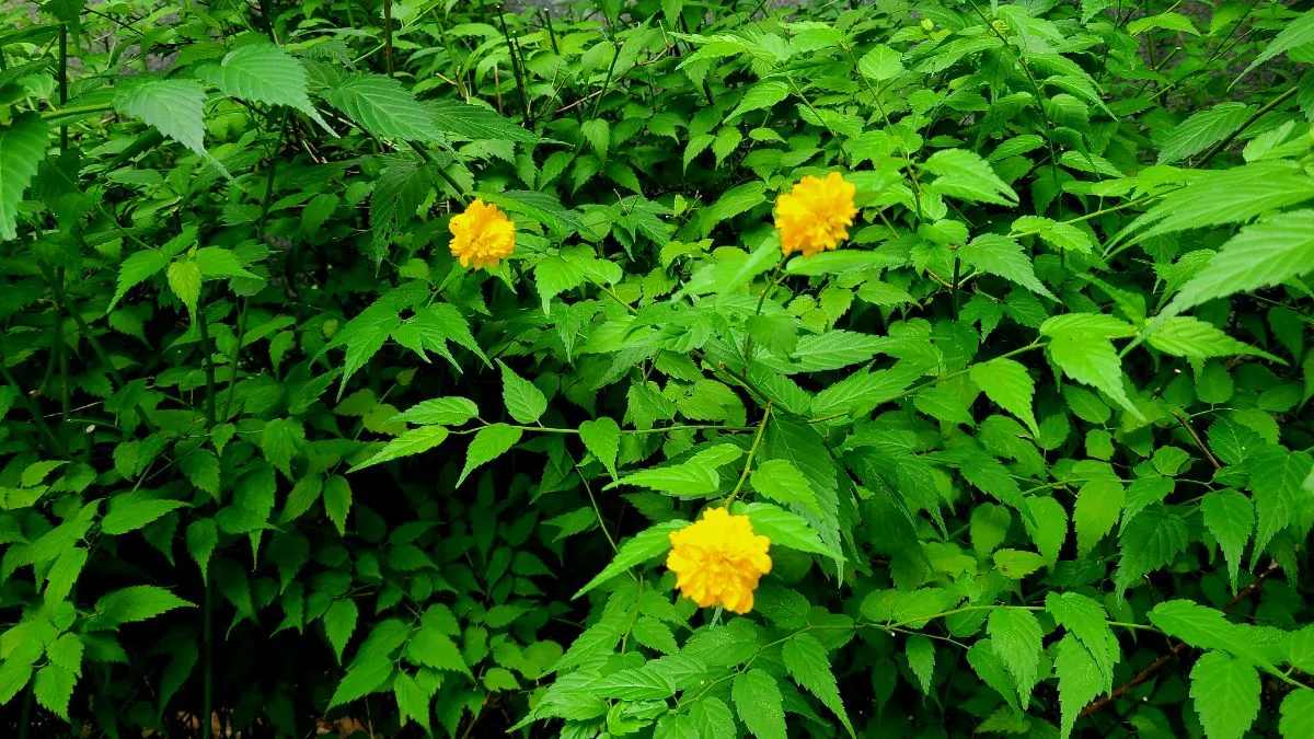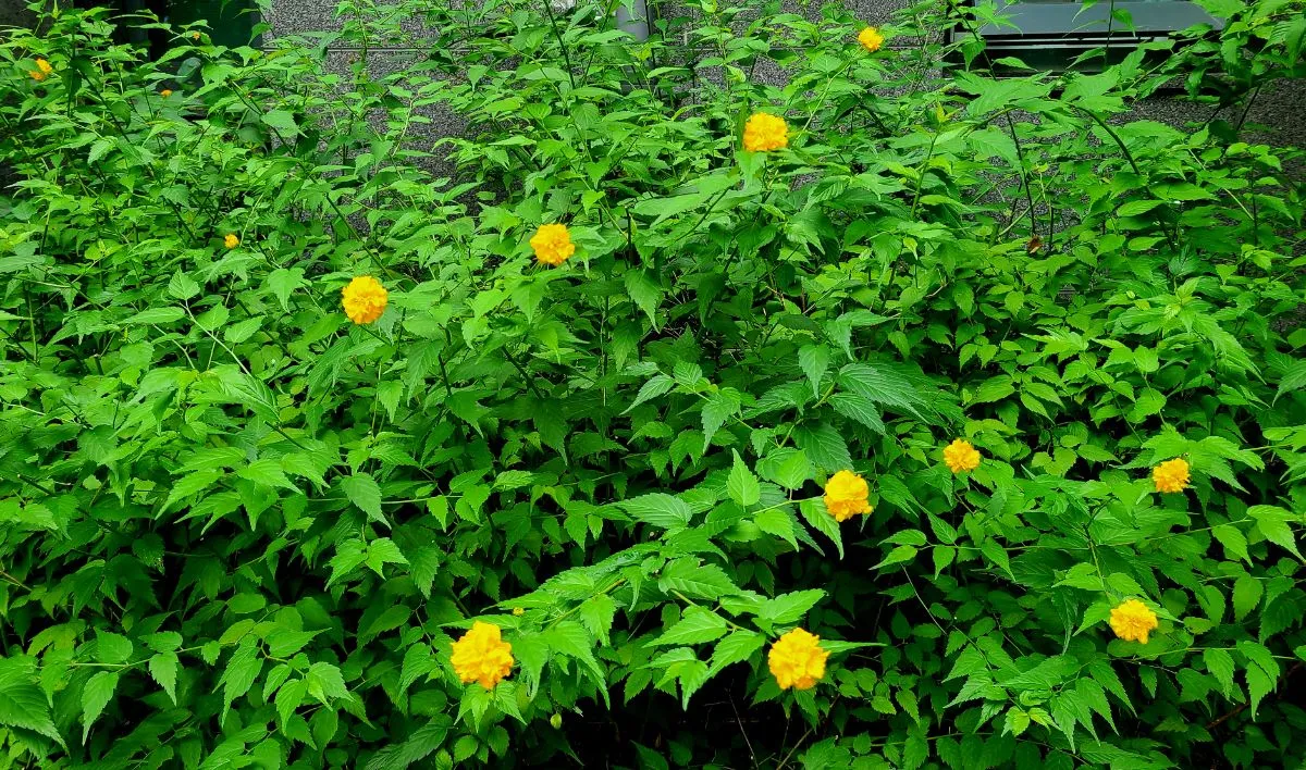 황매화는 4월 중순부터 5월 중순까지 약 1개월간 개화하며, 특히 4월 말부터 5월 초가 만개 시기입니다. 개화 후 8-9월에는 길이 5mm 정도의 검은색 수과가 익습니다.
