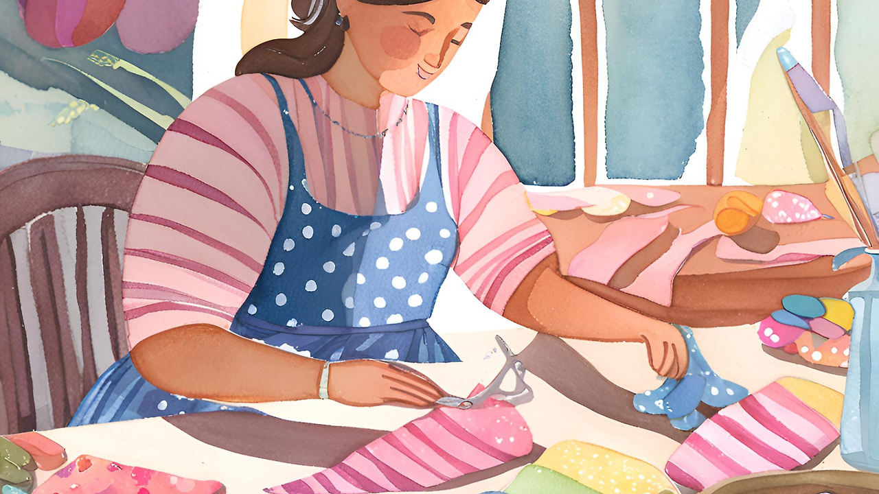 "괜찮아 괜찮아... 엄마가 뭔가 특별한 걸 준비했어. 우리 아기 무릎 다치지 말라고, 이걸로 예쁜 보호대를 만들어줄 거야."