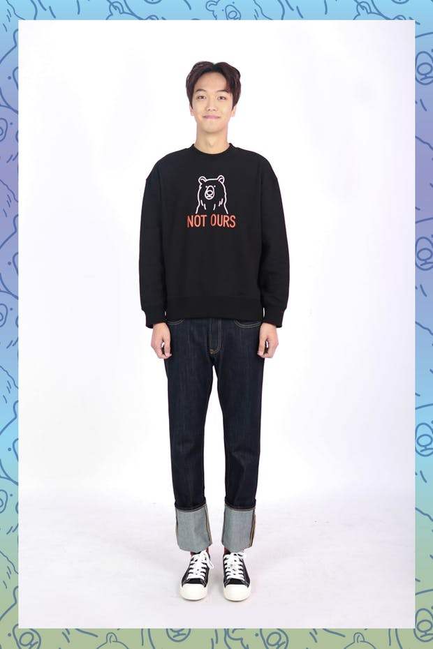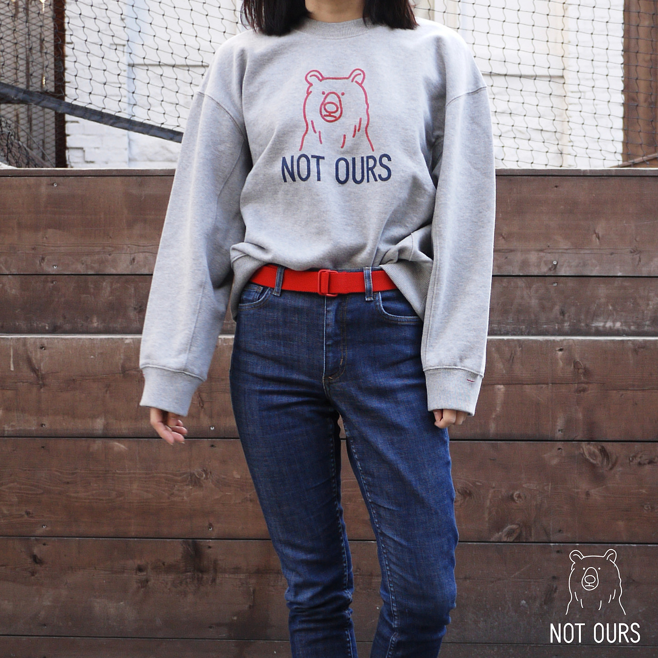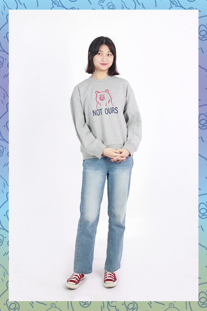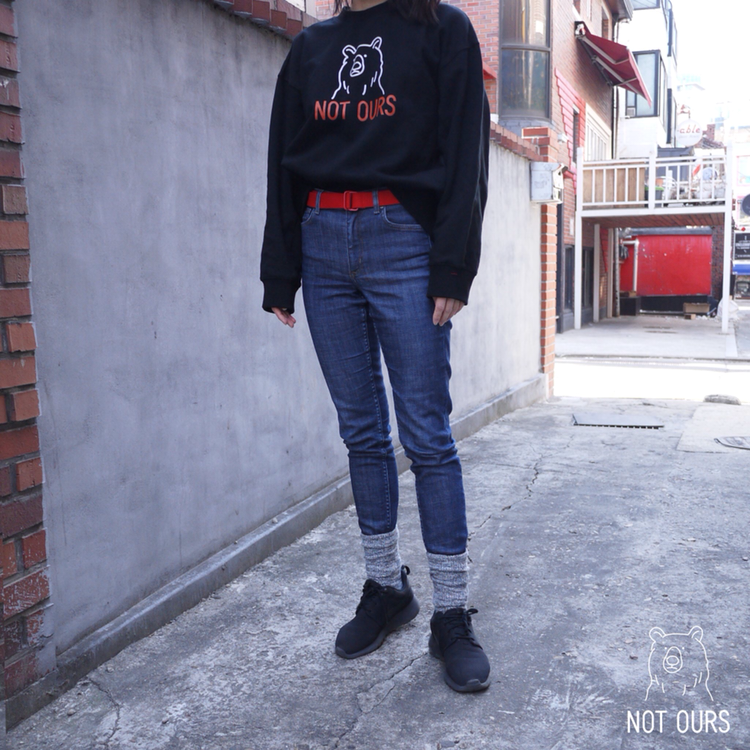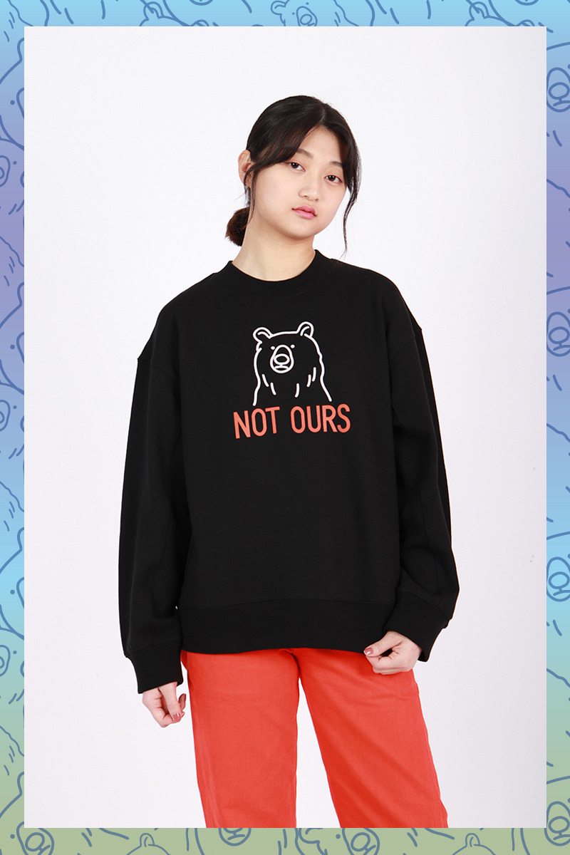 우리가 추구하는 가치이자 슬로건인 낫아워스(Not ours) 로고가 전면에 크게 프린트 되어있는 스웻셔츠입니다.