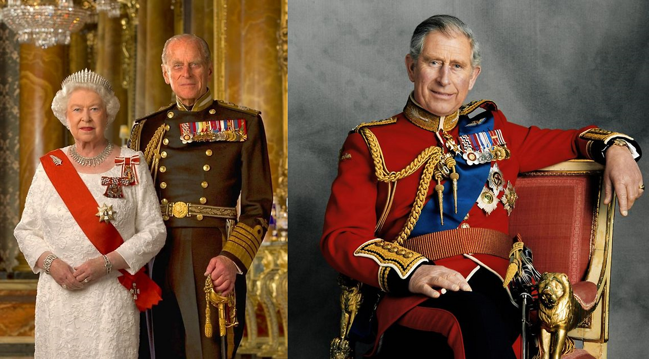 왼쪽부터 여왕, 故 에든버러 공작 , 웨일스 왕자