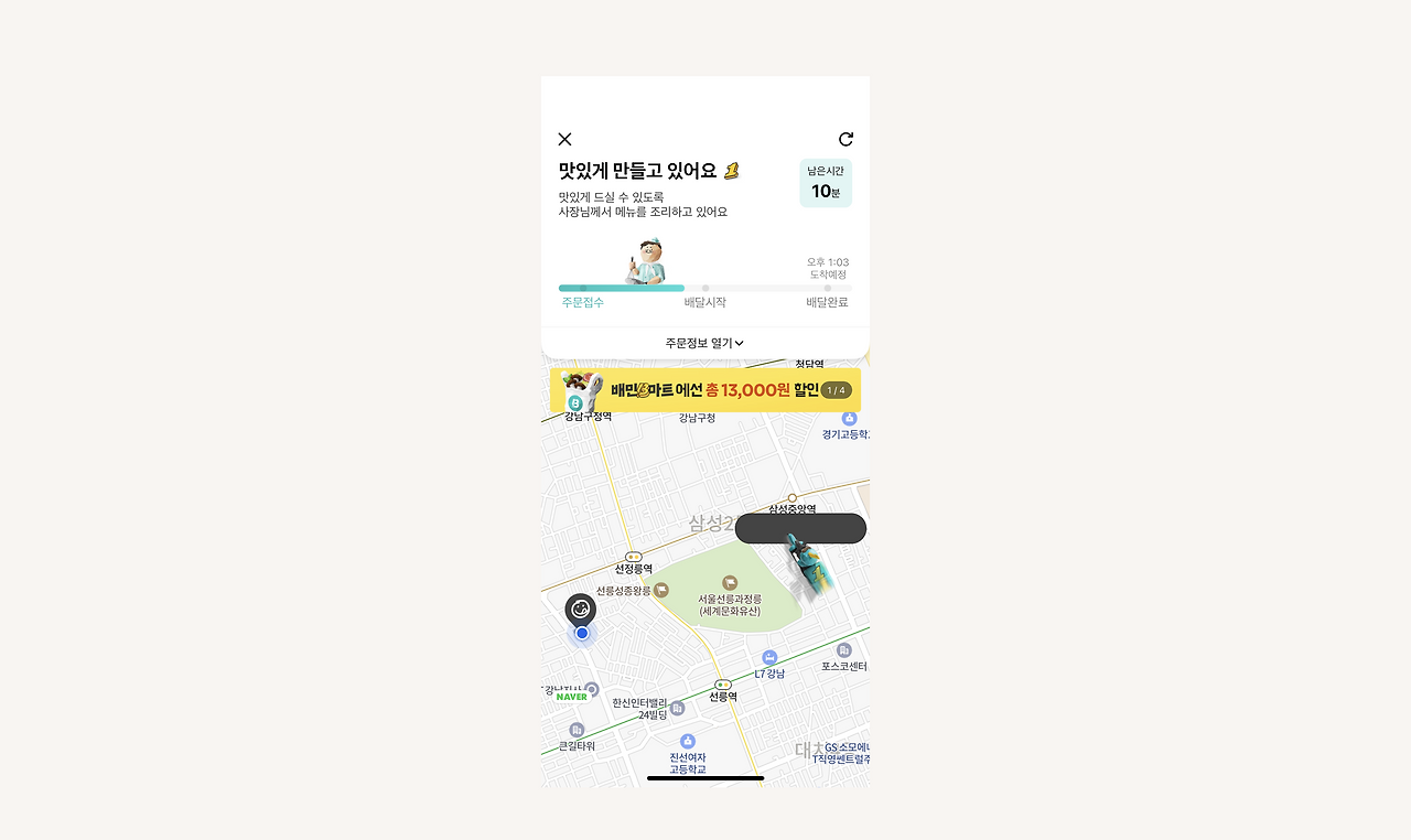 10년 전만 해도 배달원이 어디서 어떤 길을 통해 오고 있는지 궁금해하던 사람은 없었습니다. 그러나 배민 1을 통해 배달 현황을 알 수 있게 되었고 이것에 익숙해진 사용자는 타 서비스를 이용하게 될 때 불편함을 느끼게 됩니다.