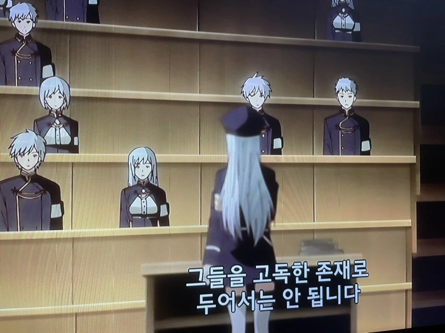 레나 소령이 신임 장교들을 상대로 위험한 특강을 하는 장면. 연설 내내 거의 레나의 뒷모습이나 학생들만을 보여준다. 관객을 신임 장교들의 위치에 놓음으로써 의도적인 거리두기를 꾀한 듯하다.