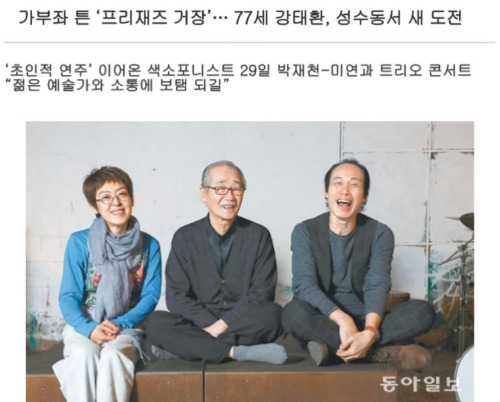 색스폰 연주자 강태환 선생님은 젊은 음악도들 사이에서 마니아층을 형성하시는 분이라고 한다. 그날도 앳된 20대 청년들이 악수하기 위해 줄을 서서 기다리다가 자기 순서가 오면 구십도로 인사하며 쑥스럽게 악수하는 모습이 거장을 존경하는 모습 그 자체였다. 나와 기획자님은 모처럼 경기도에서 서울의 성수까지 넘어온 날이었기 때문에 낯가림 따위는 접어두고 넉살 좋게 연주자들에게 다가가 말을 걸고 함께 사진도 찍고 했다.