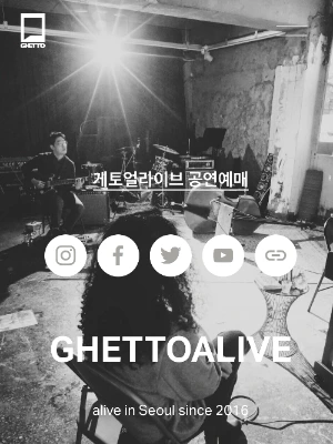 서울숲 전철역 출구와 멀지 않은 건물의 지하 1층에 위치한 게토 얼라이브는 다른 곳에서는 찾기 힘든 독보적 개성을 지닌 장소다. 계단을 내려가면 자유분방한 물감 드리핑으로 칠해진 벽면과 날 것 그대로의 천장, 그와 어울리는 듯 안 어울리는 듯 아슬아슬한 조화를 이루는 감각적인 조명 장식이 낯선 매력을 풍긴다. 여기 저기 붙인 공연 포스터가 눈에 들어오면 이곳이 힘차게 심장이 뛰고 땀냄새가 나도록 활발히 운영되는 동시대 예술 현장이구나 짐작하게 만든다.