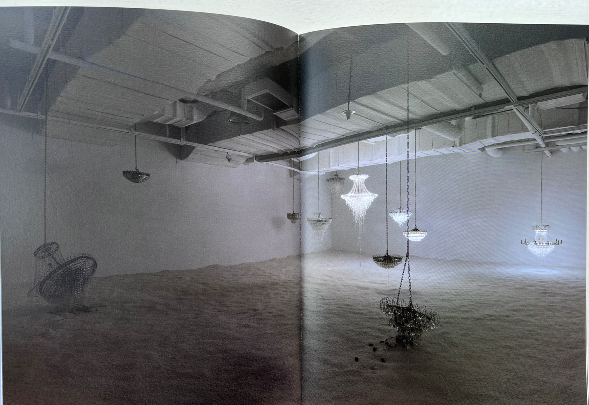 작품에 담긴 내용이 심오하다는 인상을 받은 작품이 하나 있었는데 과거에 작가가 전시했던 설치 작품을 영상으로 상영한 ' 녹슨 말 - # 기억하는 숨'이었다. 어둠 속에 여러 개의 샹들리에가 무심하게 바닥에 놓여 있거나 공중에 매달려 있는 등 다양한 방식으로 설치되어 켜짐과 꺼짐의 반복을 계속하다가 어둠으로 환원되는 모습. 샹들리에라는 화려한 형태를 사용하여 켜졌을 때 만들어내는 그림자가 아우라를 자아냈으며 서로 힘겨운 대화를 나누듯 교대로 깜빡이다 꺼지는 모습이 애처로워 보이기까지 했다. 녹슨 말이라는 표현은 누군가의 유언일 수도 있고 상대에게 전달되지 않는 무의미한 독백이 될 수도 있는 등 보는 관객에 따라 다르게 해석될 것 같다고 생각했다.