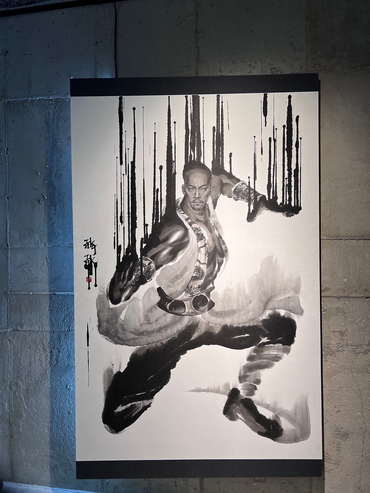 초인적인 에너지를 발산하는 무림의 고수나 외계인같은 인물을 그린 그림들이 많았고 그들에게서 익숙한 얼굴을 찾는 잔재미가 쏠쏠했다. 호감가는 너털웃음 날리며 날렵한 몸짓으로 양손으로 권총을 겨누곤했던 영화 '영웅본색'에서의 모습이 생생한 그 배우, 주윤발의 얼굴이 그려진 그림이다. 다른 벽에서는 유덕화라는 같은 시대 홍콩 영화 배우 얼굴도 찾아낼 수 있었다.