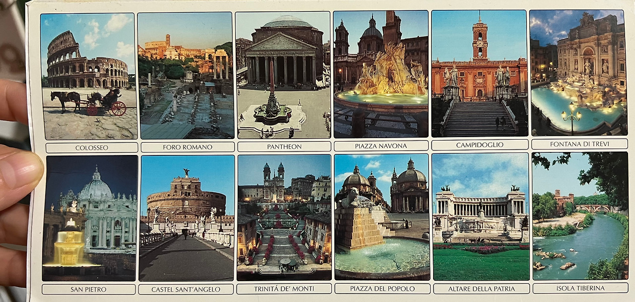 스위스 루체른에서 쿠솃(couchette)이라는 접이식 침대 객실 기차를 타고 로마를 향해 가는 여정에 만난 객실 친구들은 이탈리아인 가족이었다. 나의 영어 실력도 변변치 못했지만, 그분들은 영어를 아예 못 하셔서 손짓발짓을 해가며 의사소통을 간신히 했다. 가족 중 3명은 로마, 2명은 피렌체에 산다고 하셨고 처음에 내가 일본인인 줄 아셨다고 했다. 친절한 분들이어서 내가 화장실 다녀온 사이에 간이침대를 펴주시고 가방도 침대 위에 올려놓아 주셨다. 로마로 가는 길에 만난 그분들 덕에 이탈리아에 대한 좋은 인상을 가지고 여행을 시작할 수 있었다. 로마에 도착해서 수녀님들이 운영하시는 자그마한 유스호스텔을 구해 방에 짐을 풀다가 룸메이트가 한국 사람처럼 보여서 한국말로 말을 걸었더니 일본인이었다. 나는 런던 대영 박물관에 갔을 적에 일본 남자가 일본말로 말을 걸어온 적이 있다는 일화를 이야기하며 일본인처럼 보이는 한국인과 한국인처럼 보이는 일본인이 같이 웃었다.