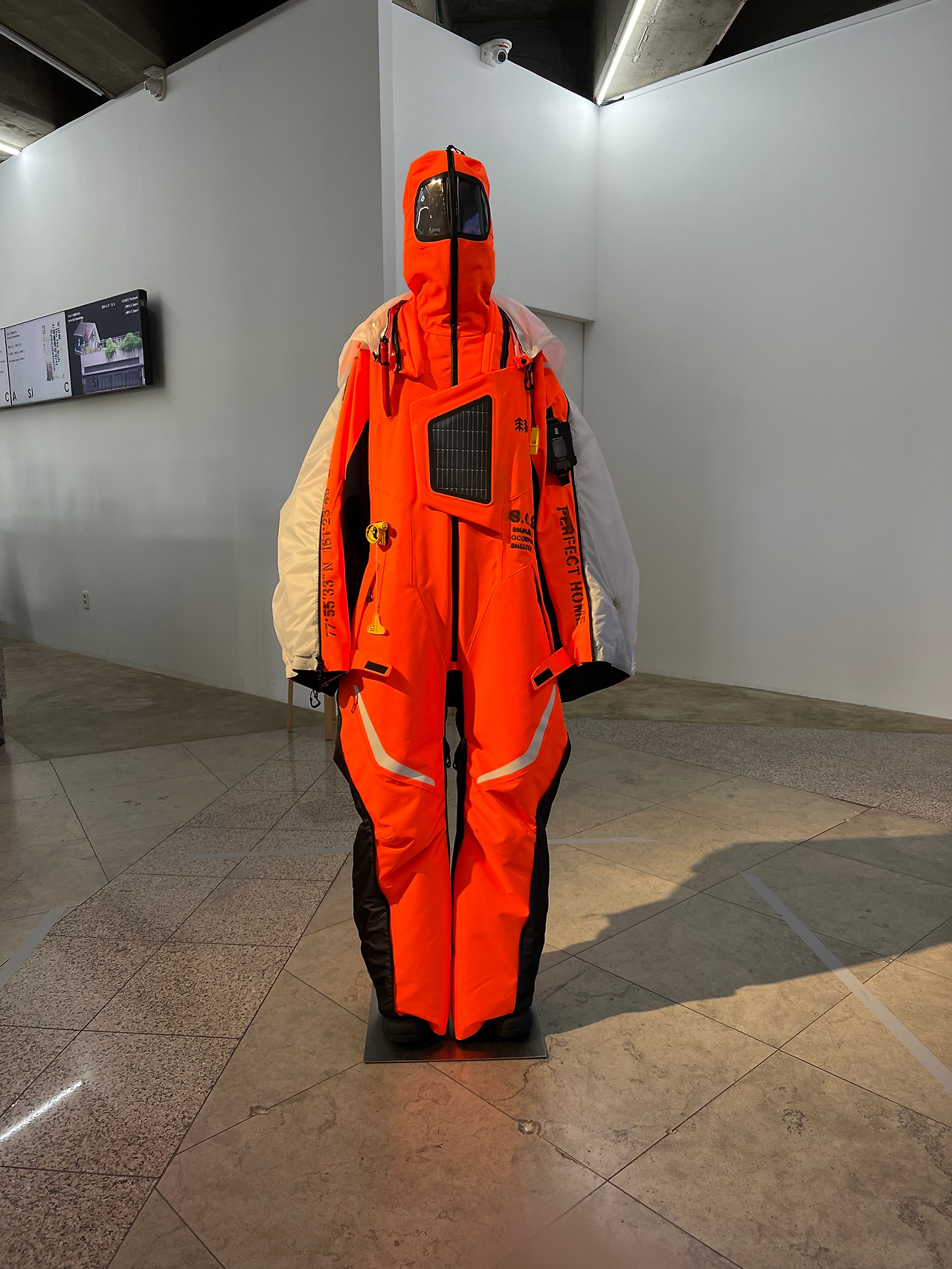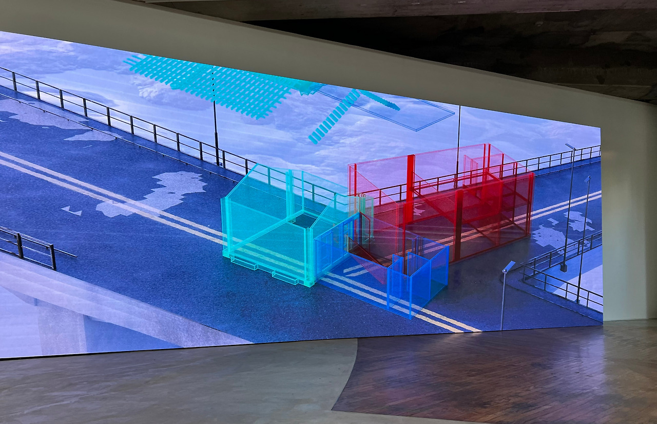 1층의 '다리 프로젝트' 라는 작픔은 작가가 주인공이 되어 자신이 몸담았던 뉴욕, 런던, 서울 세 도시들의 위치를 연결하고 중간 지점인 북극 지방에 완벽한 집을 만드는 상상을 실현하기 위한 여러 시도들을 유머러스한 내용과 스펙터클한 그래픽 영상으로 풀어냈다. 영상 속에서 작가가 극지방에서 생존하기 위해 착용했던 간이용 집 역할을 하는 방한복이 스크린 앞에 실물로 전시되어 있었고 그 복장을 구상하는 과정의 입체 샘플과 방대한 스케치들이 함께 전시되어 있었다. 실물과 미디어 아트를 함께 구성함으로써 관람자가 가상의 세계에 더욱 몰입할 수 있게 했다.