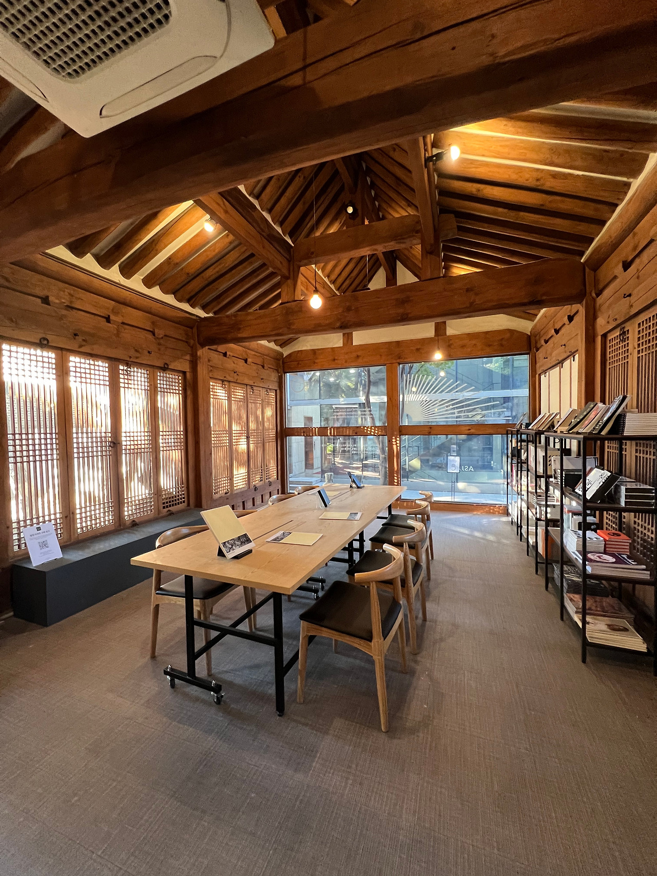 이번 서도호 전을 열면서 아트선재 센터 옆에 있는 한옥 건물을 지난 전시의 팜플랫들을 진열, 판매하는 아카이빙과 아트샵을 겸한 '더북스'라는 곳으로 꾸몄다고 한다. 내가 예전에 아트 선재 센터를 방문했을 때 못 봤던 곳이라고 안내하시는 분께 말씀드렸더니 과거에는 갤러리, 카페 등으로 운영되었다고 알려주셨다. 내부도 아늑했지만 한옥 외부의 대청마루에 앉아 작은 전통 정원을 바라보는 고즈넉한 여유를 즐길 수 있다는 점이 좋았다. 서도호 작가의 전시가 준 경이로움에 대한 감사의 마음으로 그동안 잘 사지 않던 전시 팜플랫을 특별히 구입했다. 전시 팜플랫이라고 했지만 작가의 러프한 아이디어 스케치들이 인쇄된 두툼한 스케치북이라 작가의 그림을 두고두고 꺼내 볼 수 있다는 점이 마음에 들었다.
