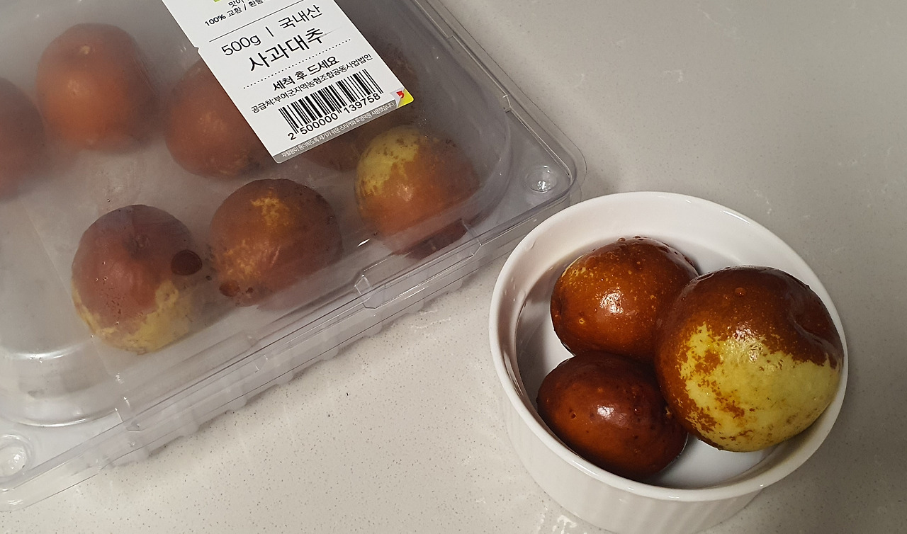 추석연휴도 모임 없이 그냥저냥 보내고 잊고 있었는데 마트에서 사과대추를 보니 반가워서 한 팩 집어왔다.