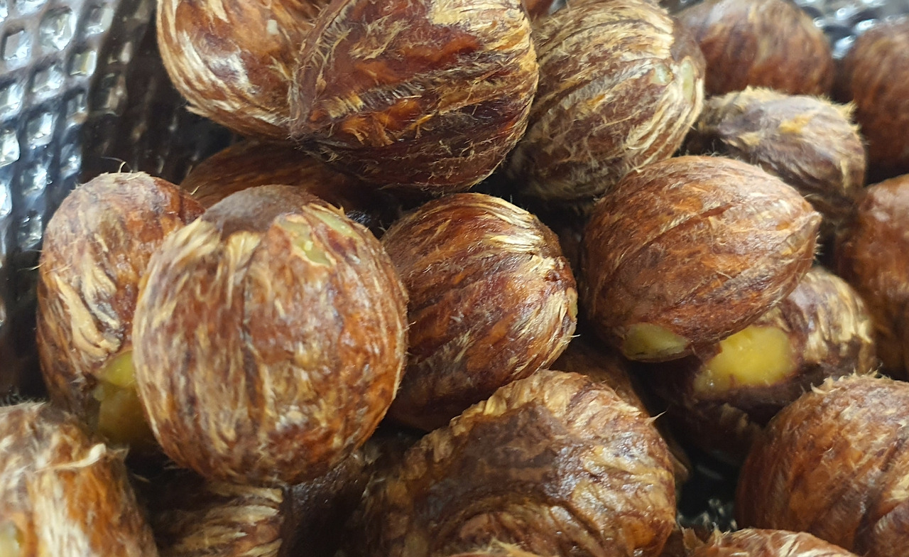 겉껍질 벗긴알밤. 내 손바닥만큼 큰 알밤.
