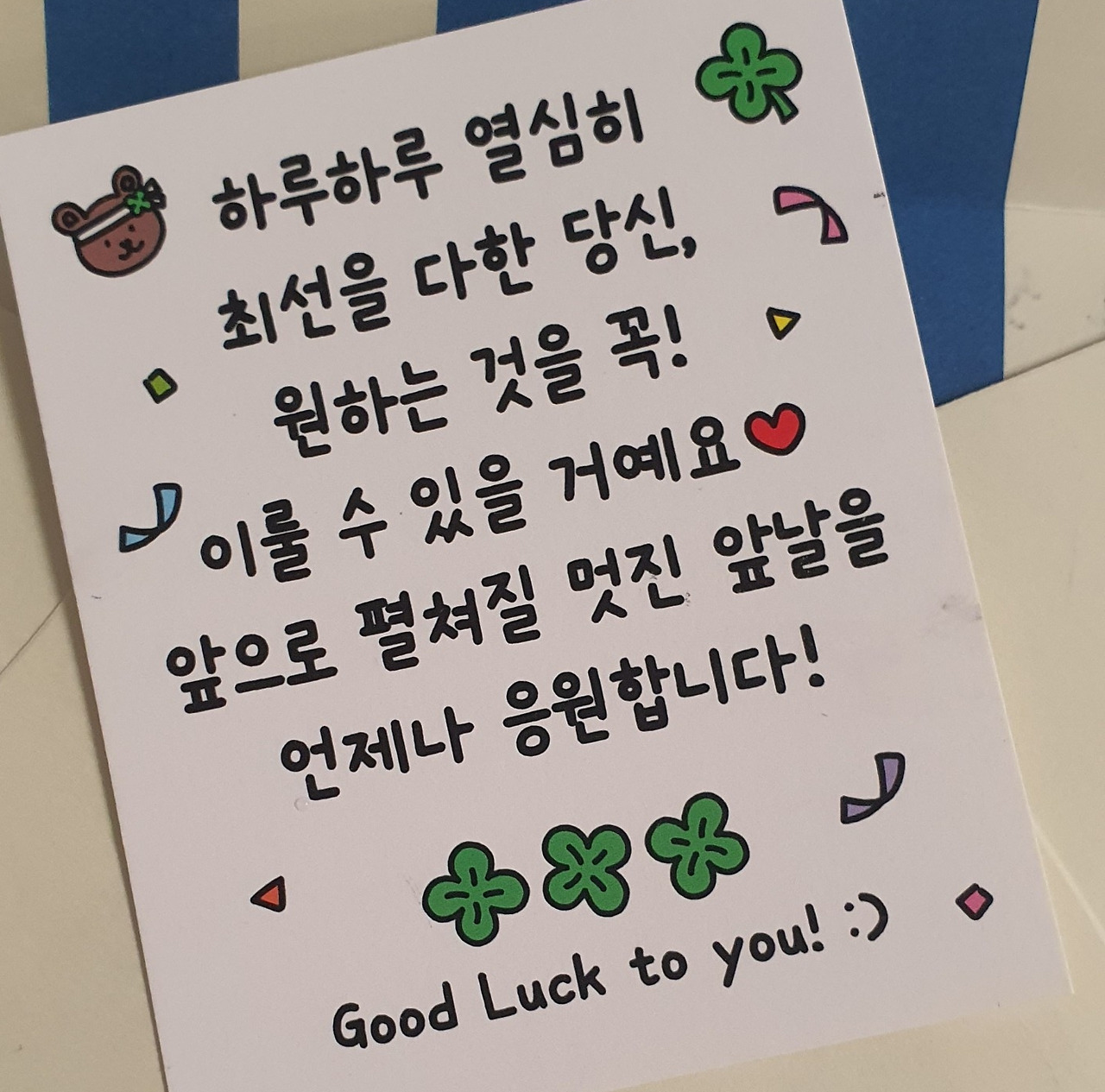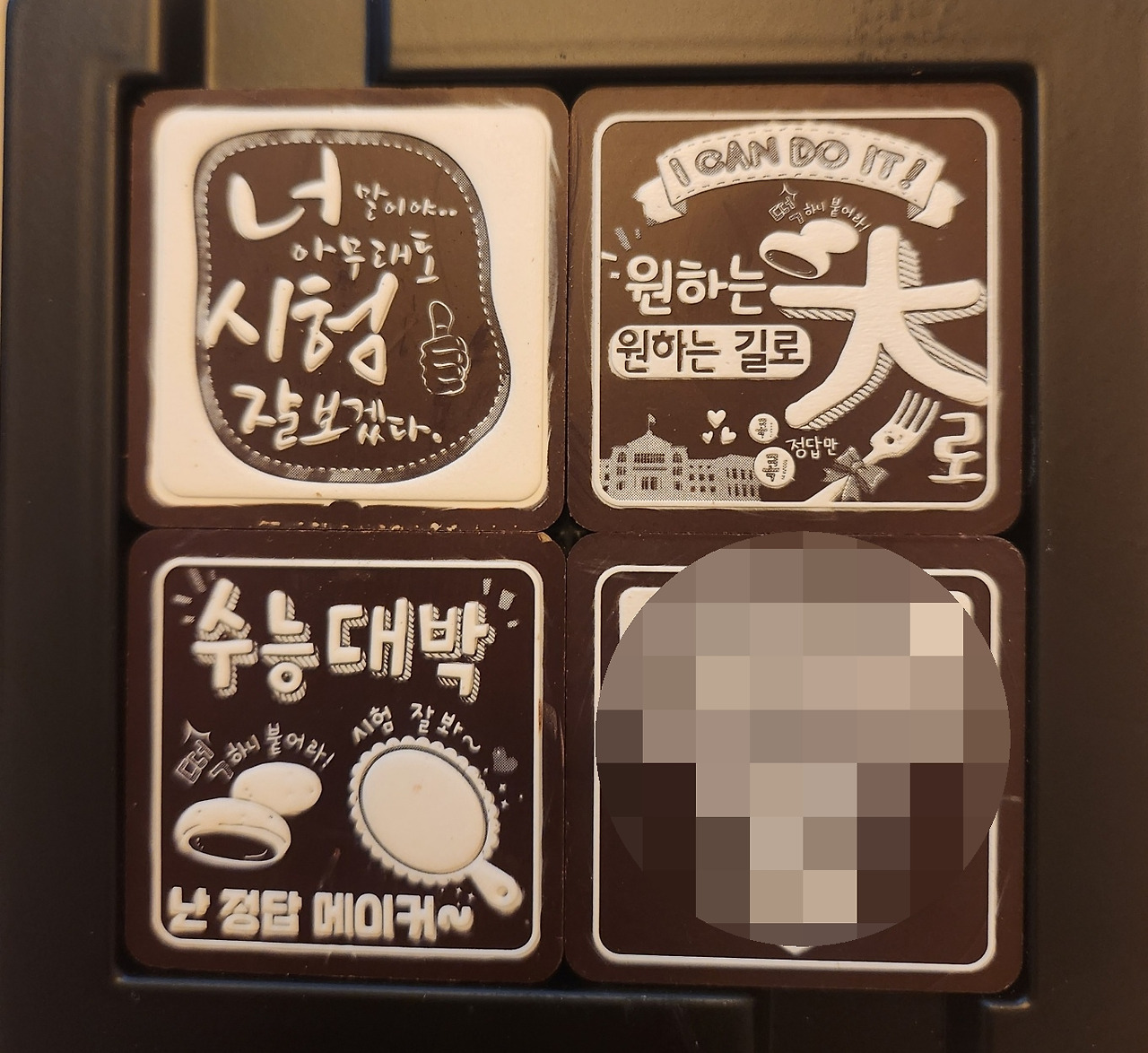 수능 응원 문구와 함께 초콜릿과 사탕이 예쁘게 포장되어