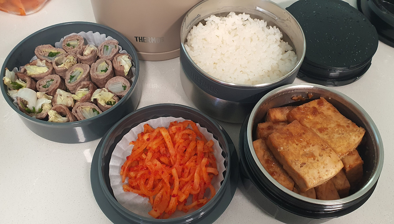 내일 도시락 뭐냐고 도시락 뚜껑 자기가 열고 닫겠다고 옆에서 계속 종알종알