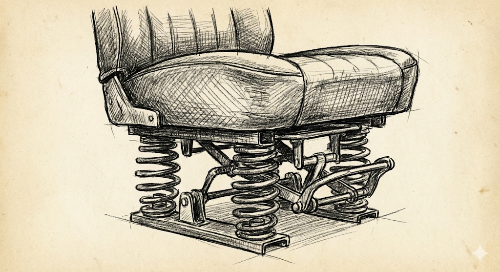 덜렁거리는 에어 서스펜션 의자에 앉아