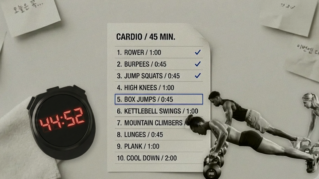 이때의 안도감은 아무것도 결정하지 않아도 된다는 나태함이 아니다. 검증된 시스템이 내 에너지를 낭비하지 않게 해 줄 것이라는 구조적 신뢰에서 온다. 선택에 소모되는 에너지가 차단되니, 남은 에너지가 전부 실행(Action)으로 향한다. 생각보다 많은 사람들이 운동 자체가 힘들어서 포기하는 것이 아니라, 무엇을 얼마나 해야 할지를 결정하는 단계에서 지쳐 포기한다.