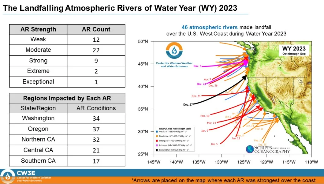 The Landfalling Atmospheric Rivers of Water Year 2023 (California) (Image: Center of Western Weather and Water Extremes)