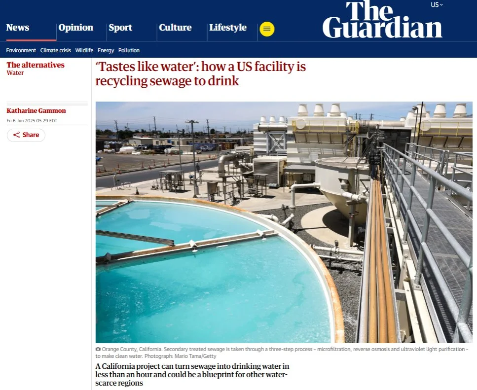 Katharine Gammon, "Tastes like water’: how a US facility is recycling sewage to drink", The Guardian, Fri 6 Jun 2025