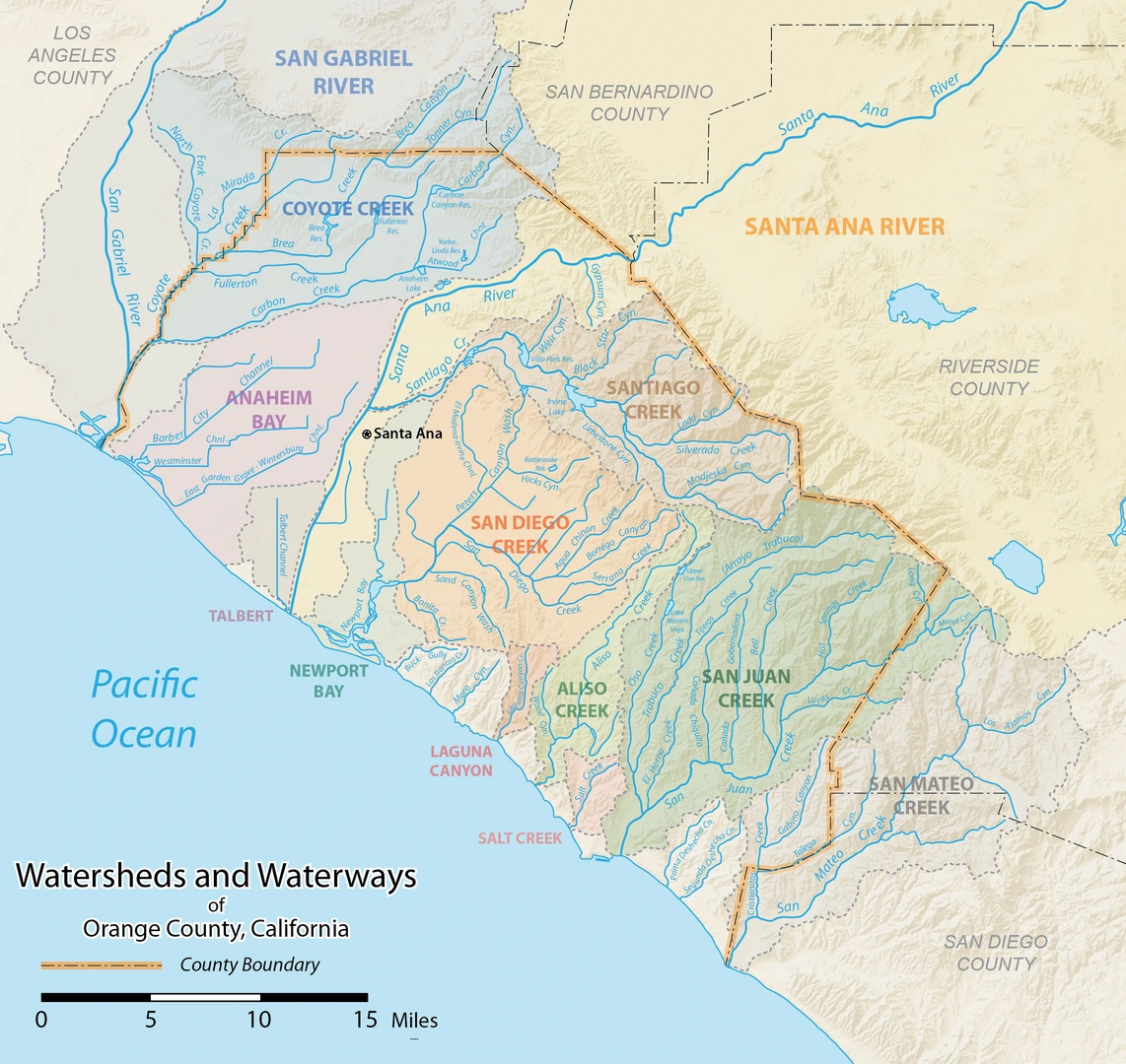 Watersheds and Waterways of Orange County, California, USA, (Wikimedia.org)