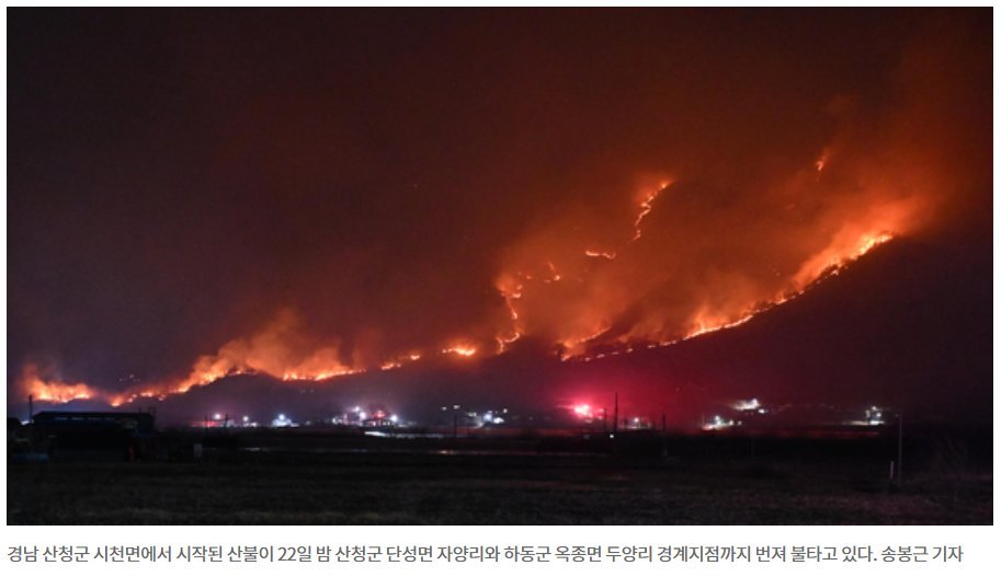 문희철 기자, 황수빈 PD, "축구장 4600개 크기 불탔다…전국 동시 산불, 인명피해 10명", 중앙일보, 2025-03-23