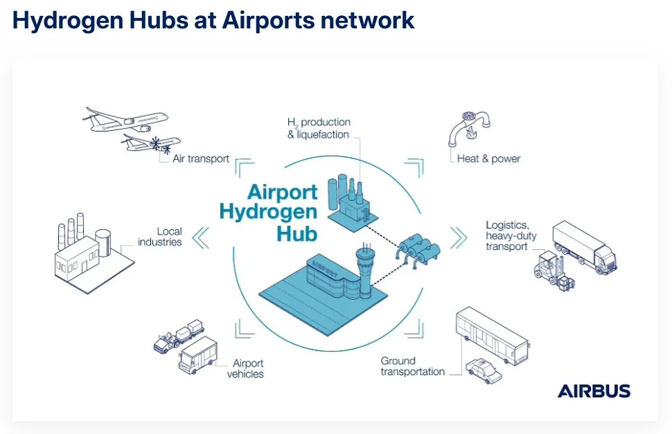 에어버스(AIRBUS)는 수소 항공기와 더불어 공항 내의 주유소처럼 비행기에 수소를 공급할 수 있는 완전한 '수소 공항' 네트워크 형성도 병행하고 있다. 미국의 델타(Delta) 항공과 이지젯(easyJet), 그리고 에어 뉴질랜드(Air New Zealand) 등 다수의 항공사가 이 프로젝트에 참여하고 있다.