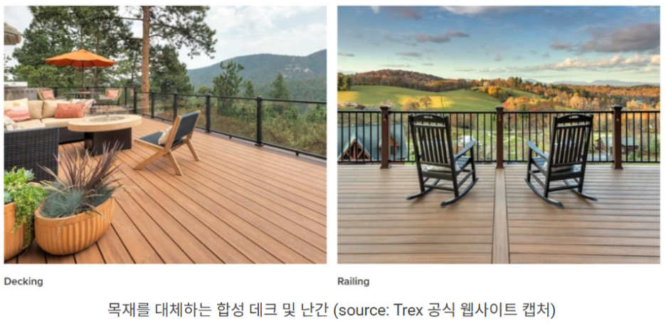 아직까지도 미국의 주택은 76%가 목조 데크를 전통적으로 많이 사용하고 있다. 시간이 지나면서 시설이 노후화되면 목조 데크 교체는 필수적이다. 이 시장규모가 약 800억 달러(약 111조 2,000억 원)에 달해 향후에도 지속적인 성장이 기대된다.