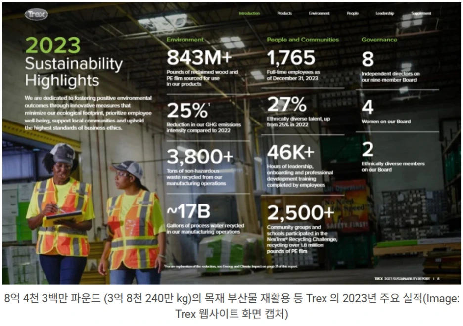 Trex 기업정보 https://www.trex.com/why-trex/eco-friendly-decking