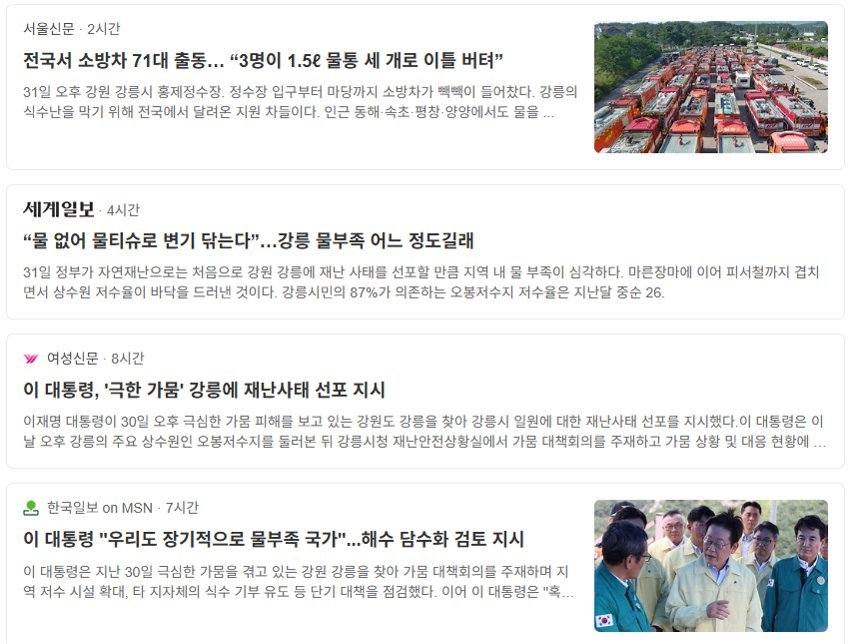 최서윤 기자, ''제한급수 75%' 강릉, 기후위기·인재 겹친 최악의 물부족[기후로운 경제생활]', CBS 노컷뉴스, 2025-08-30