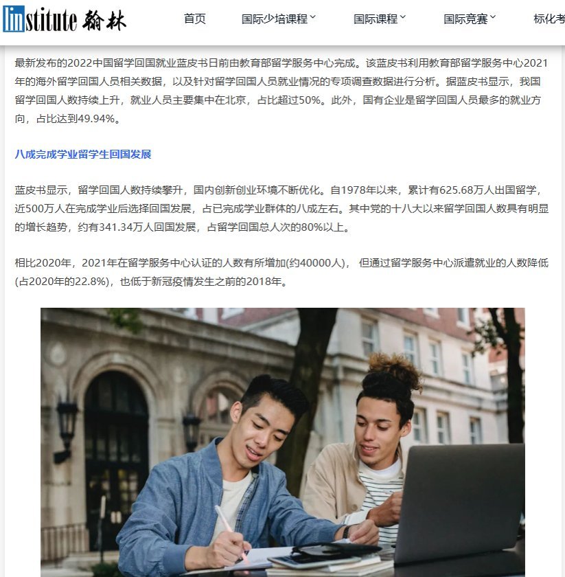 翰林,'教育部留学服务中心发布《2022中国留学就业蓝皮书》:留学回国人数持续攀升!'(*중국 교육부 해외유학서비스센터, '2022년 귀국 중국 유학생 취업 블루북' 발간), 2023年5月5日