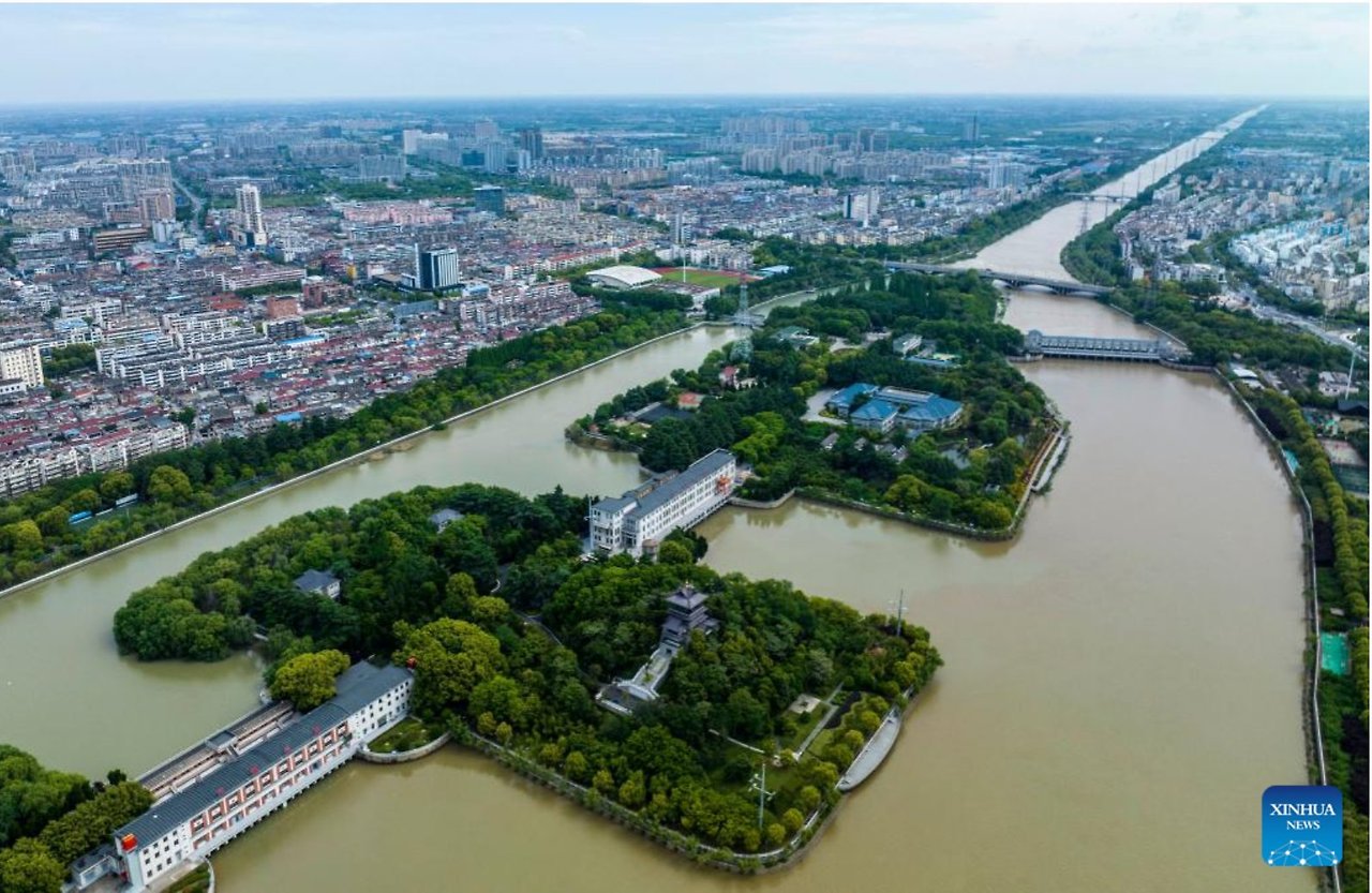 위의 장쑤성을 기점으로 하여 중국 남동부의 ‘항저우‘에서 북동부에 위치한 수도 ’베이징’까지 물길이 이어진, 고대 수나라-당나라 시절에 건설된 총길이 1,794km에 이르는 베이징-항저우 대운하(Grand Canal 京杭大运河)를 경유한다. (아래 지도)