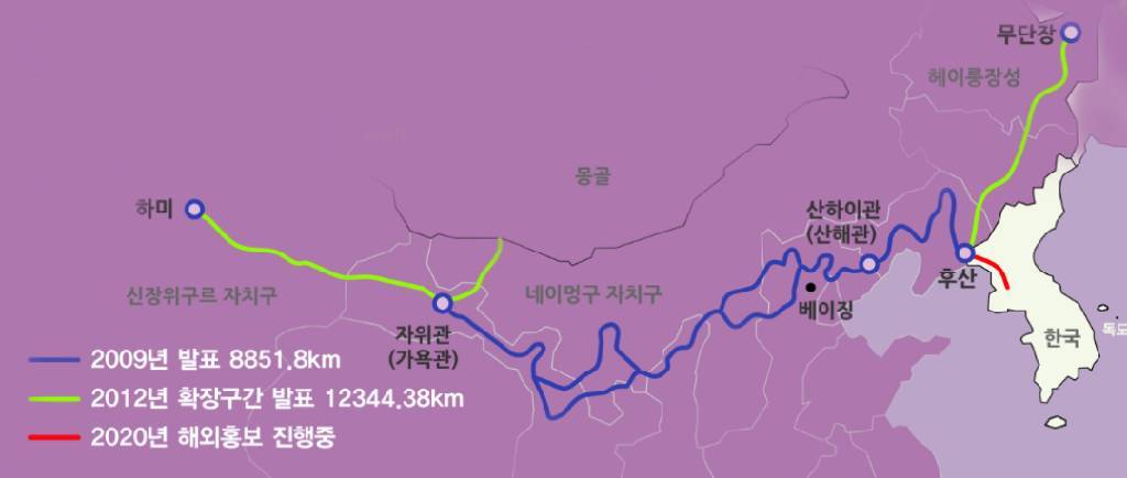 중국 허베이성 싼하이관(山海關)에서부터 간쑤 성의 지아위관(嘉峪關)에 이르는 구간에 걸쳐 있는 중국의 대표적인 건축물인 '명나라 시대의 만리장성'은 그 길이가 8,851.8km(킬로미터)로 알려져 있다.