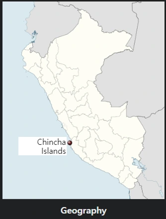 페루 '친차섬'에 쌓여있는 2백만 톤이나 되는 엄청난 양의 '구아노'는 새(Bird) 혹은 동굴에 사는 박쥐의 배설물(똥)이다. 비료와 성장촉진제로 효과가 무척 높다. 친차섬은 (새똥이) 축적된 광범위한 구아노 매장지로 인해 관심을 끌었지만, 1874년에 공급량이 거의 바닥이 났다. (번역 by 노바티오)