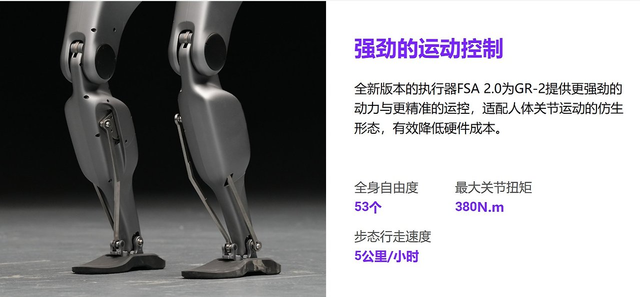 최근에 발표한 GR-2는 신체 자유도(DoF) 53개, 최대 관절 토크 380N.m(뉴턴미터), 보행 시속 5km에 도달한 것으로 공식 회사 웹사이트에 공시되어 있다.