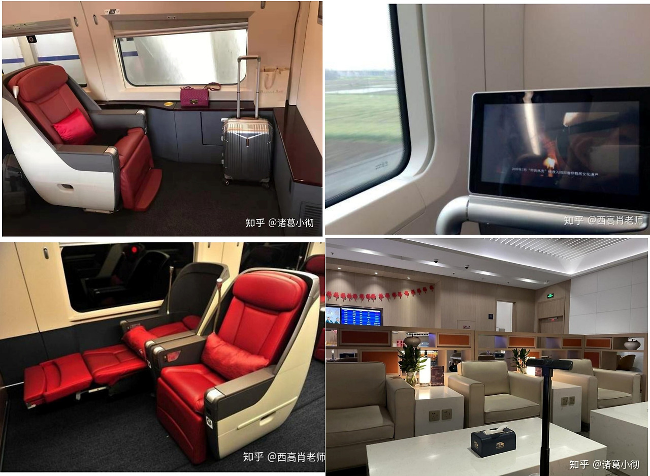 중국 고속철도 비즈니스 클래스 좌석(시계 반대방향)과 비즈니스 고객 전용 라운지 (Image by 知乎用户5SMqIM from 知乎)