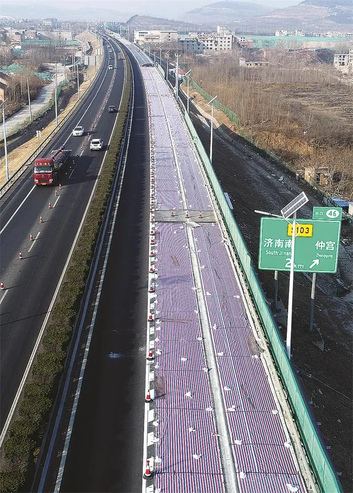 특히, 산둥성 (山东省/Shāndōng Shěng)의 '지난-웨이팡' 고속도로 (济南-潍坊高速公路/Jǐnán-Wéifāng Gāosù Gōnglù)에 설치된 68MWh 시스템은 연간 68GWh를 생산하여, 해당 노선의 전력 소비량을 4배 이상 초과 충당함으로써 '중국 최초의 제로 탄소(Zero-Carbon) 고속도로 노선'이라는 타이틀을 얻었다.