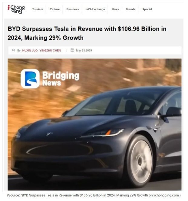 "BYD Surpasses Tesla in Revenue with $106.96 Billion in 2024, Marking 29% Growth | ichongqing,