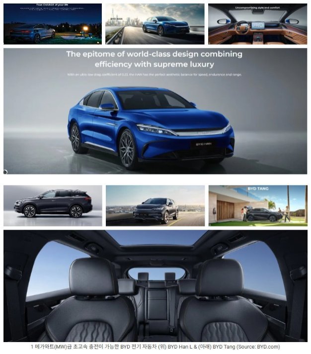 초고속 충전시설과 초고속 충전이 가능한 고성능 배터리를 장착한 전기 자동차까지 원스톱 제작 및 서비스 체제를 구축하고 있는 BYD의 기술력이 이제는 다소 두려워지기 시작했다.