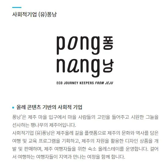현재는 사단법인 제주올레가 인큐베이팅한 사회적 기업 퐁낭의 상품 서비스팀에서 일하고 있고요.