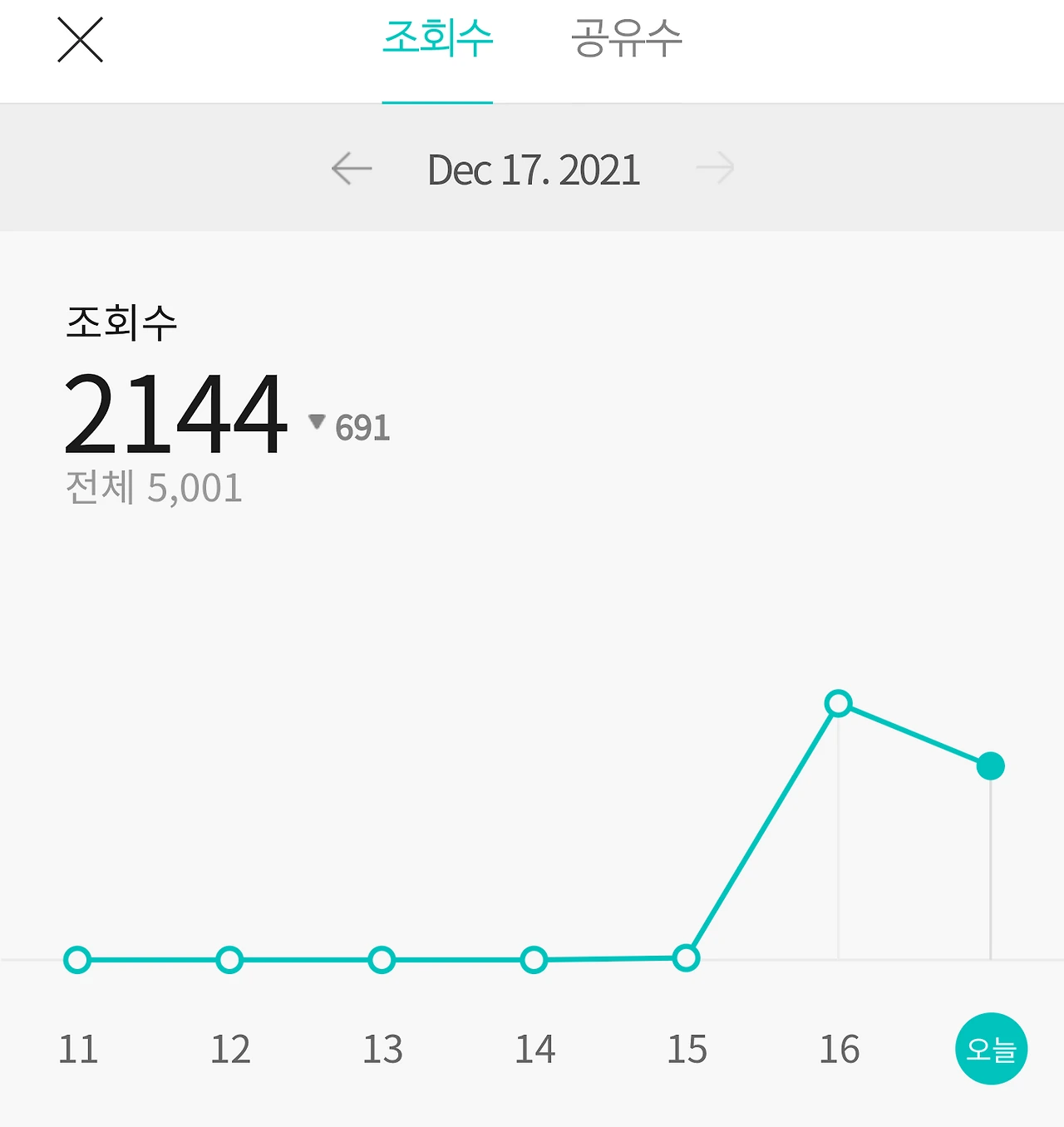 다음 메인 스타일 탭에 어제 쓴 글 <2주 다이어트 성공>이 소개되어 조회수 5천뷰가 넘었다. 메인에 소개되면 종종 수십만이 넘기도 하는데, 나는 변동 코너에 조그맣게 나와서 현재까지 몇천뷰 수준이다. 평소보다 조회수가 높다고 무슨 일이 일어나지는 않는다. 조회수가 치솟으면 손발이 벌벌 떨린다는 후기를 보았다. 이것은 그저 보여서 클릭한 하나의 현상이라 큰 의미는 없다. 그래도 담당자가 재미있어 보이는 글을 뽑았을 테니 작은 쿠키 하나 받은 기분이다. 브런치 시작하고 조회수 가장 많이 나온 날이다. 다음에는 더 큰 곳에 고정으로 걸려서 오십만 조회수를 돌파하면 좋겠다. 무심코 들어와 몰입하게 만들 자신이 있다.