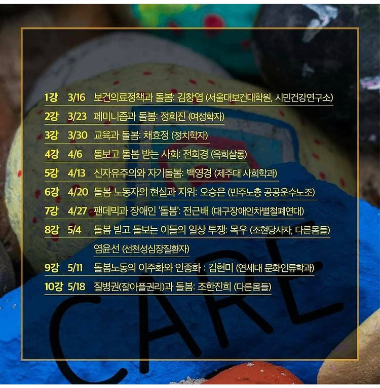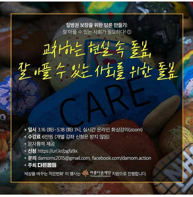 <교차하는 현싱 속 돌봄, 더 잘 아플 수 있는 사회를 위한 돌봄>이 10주차로 기획, 진행되고 있다.