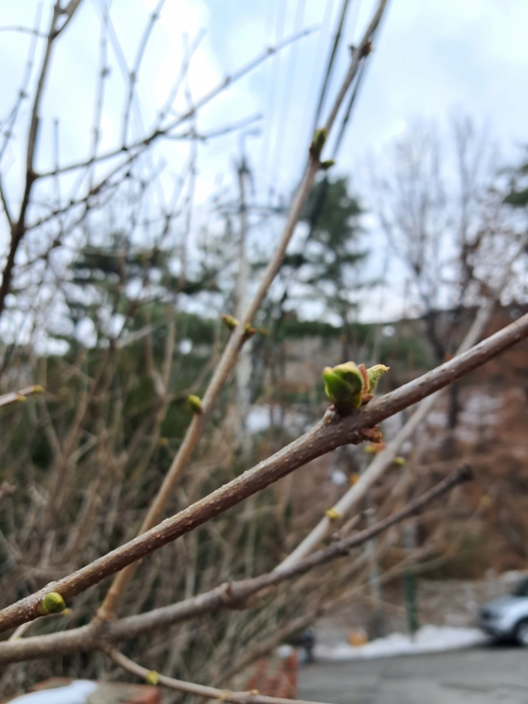 가파른 언덕길을 오른다. 전봇대에 매달린 화살표 팻말이 박물관까지 500m라고 알려준다. 멀지 않으나 오르막 경사가 만만치 않아 숨이 차다. 마스크 속을 휘돈 콧김이 뿌옇게 안경을 가린다. 여염집 담장 위로 진회색 솜뭉치가 올라왔고 목련 봉오리 옆 파릇파릇한 저 망울은 확실히 진달래다. 벌써? 우리 집 꽃뱀처럼 쥐새끼처럼, 부암동 한옥 뜰에 웅크려 앉아 다가올 계절을 꿈꾸는 그들. 아직도 못 끝난 나의 겨울준비. 초조하다. 맞바람이 인다. 여전히 춥다.