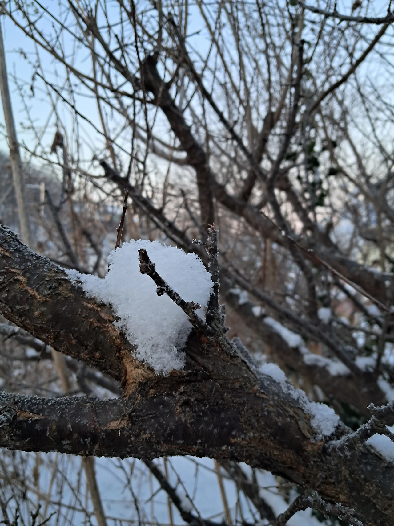 홍매 여윈 가지에 흰 꽃이 매달렸다.