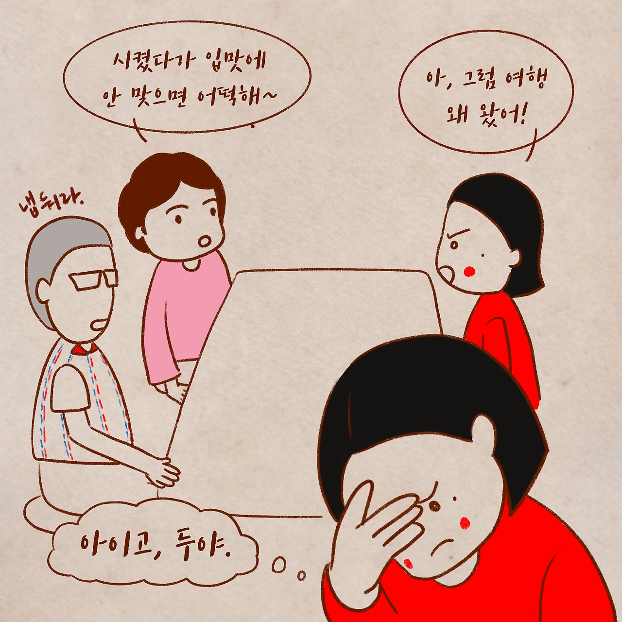#hanamany #하나와여러개 #인스타툰 #웹툰 #일상툰 #환장타임 #참을인 #아빠 #엄마 #잔소리 #인내 #공감 #부모님모시고여행 #여행스타그램 #가족여행 #여행만화 #부산여행 #부산만화 #일러스트 #만화 #그림일기 #인스타만화 #webcomic #illustration #webtoon #comic #drawing #diary