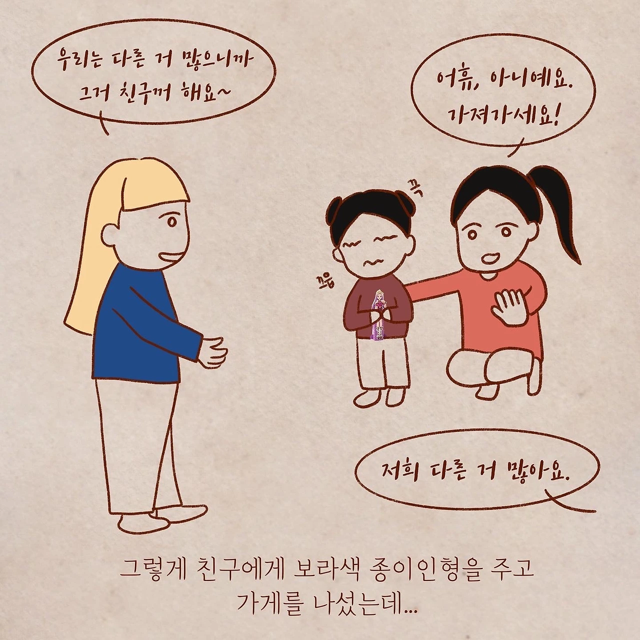 몇 개월이 지난 지금... 가끔 조카가 물어본데요... 보라색 종이인형 잘 있냐고...