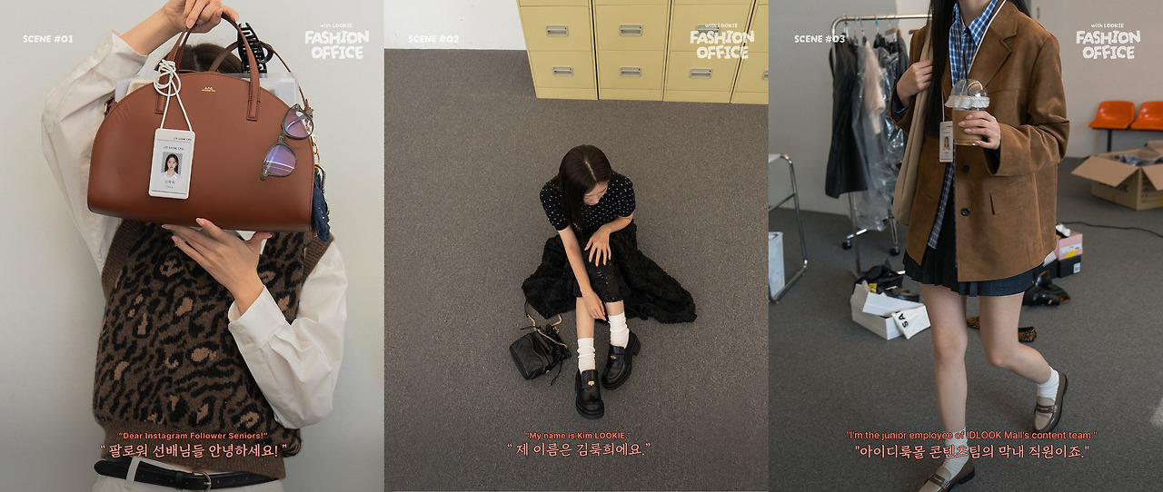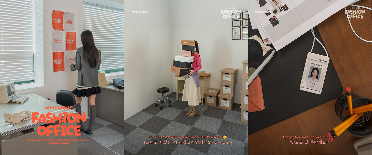 요즘 뜨는 키워드 중 하나가 바로 임플로이언서 마케팅인데요. 직원 Employee과 인플루언서 Influencer가 합쳐진 형태로 자사 직원을 내세워 브랜드와 제품, 서비스를 소개하는 콘텐츠를 많이 접해봤을 거라 생각해요. 아이디룩은 한 발 더 나아가 자사 세계관을 가진 AI 임플로이언서를 선보였어요. 콘텐츠팀의 신입사원 컨셉의 가상 캐릭터 '김룩희 Rookie'는 27세, 젠지 세대, 여행을 좋아하고 청순한 외모에 힙한 스타일도 소화하는 캐릭터를 페르소나화 한 가상 캐릭터인데요. 아이디룩 공홈과 인스타그램에서 실제 인플루언서 같이 아이디룩 제품의 착장 비주얼을 선보이고 있어요.