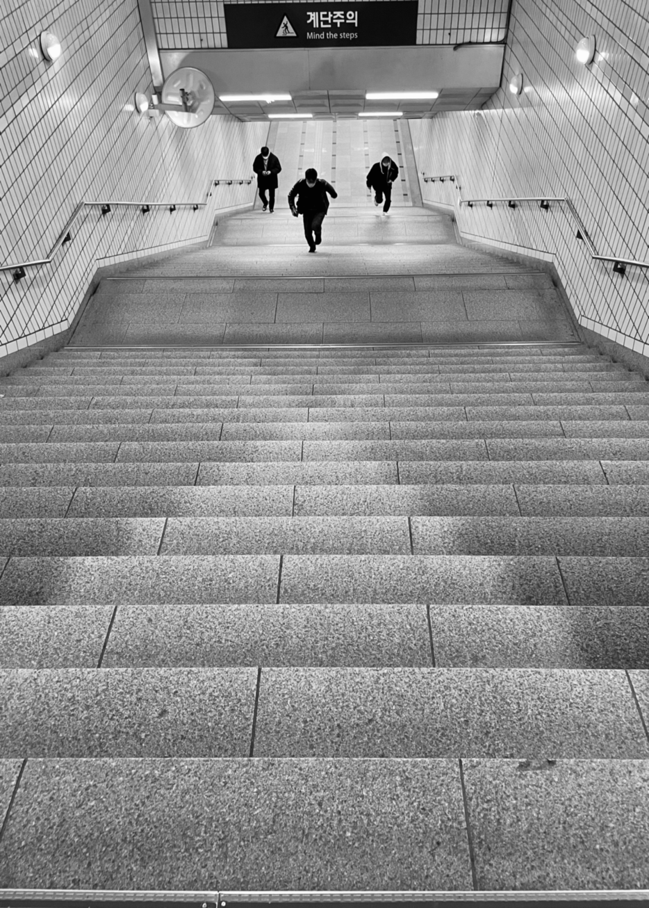 환승 시간을 맞추기 위해 계단을 힘차게 뛰어오른다.
