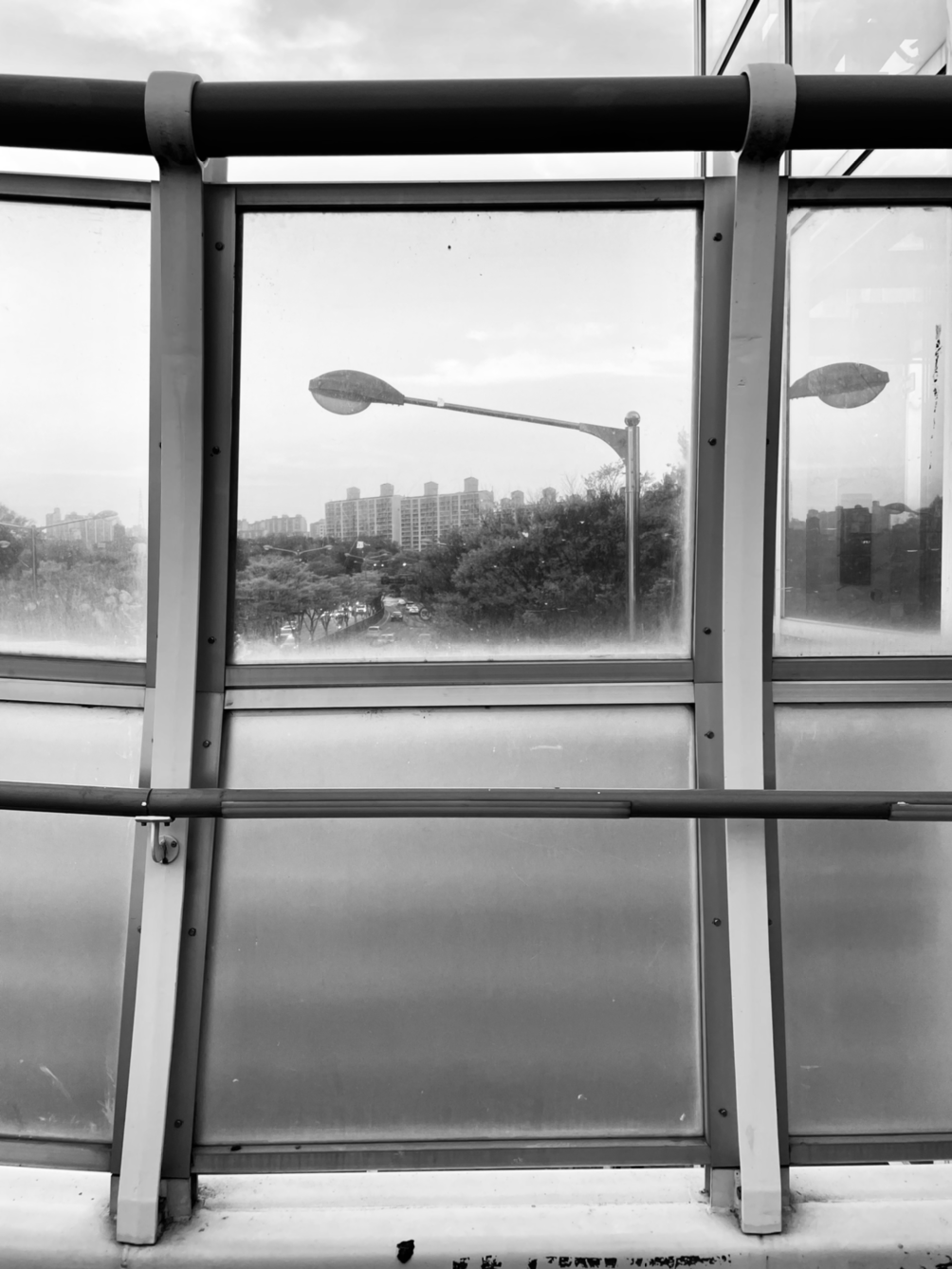육교에 올라서 보니 높은 가로등이 가깝게 보인다.