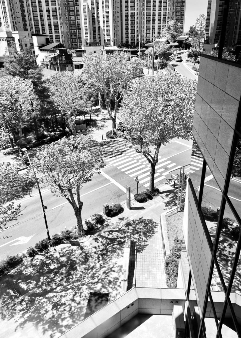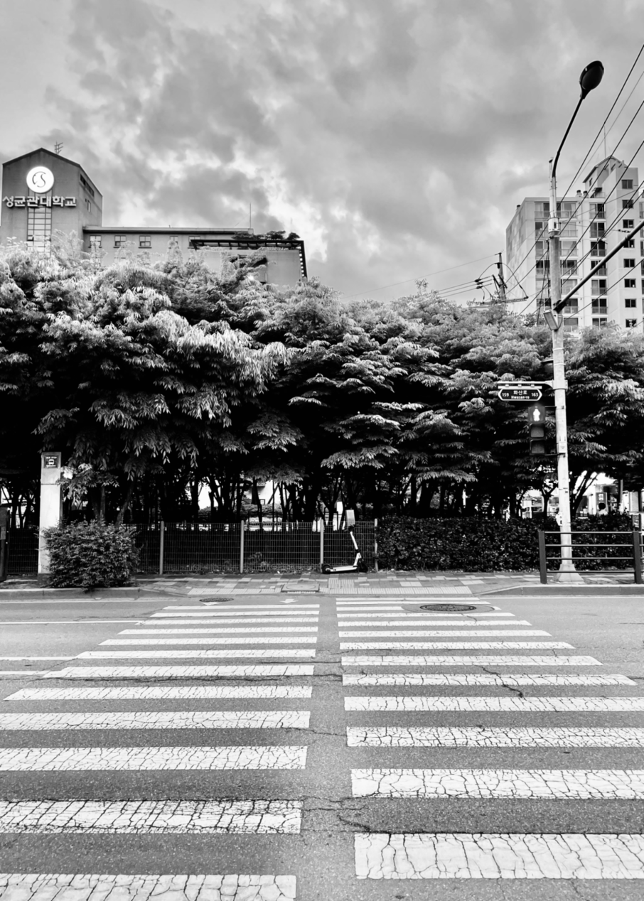 무단횡단을 막는 건 오직 붉은 신호등뿐.