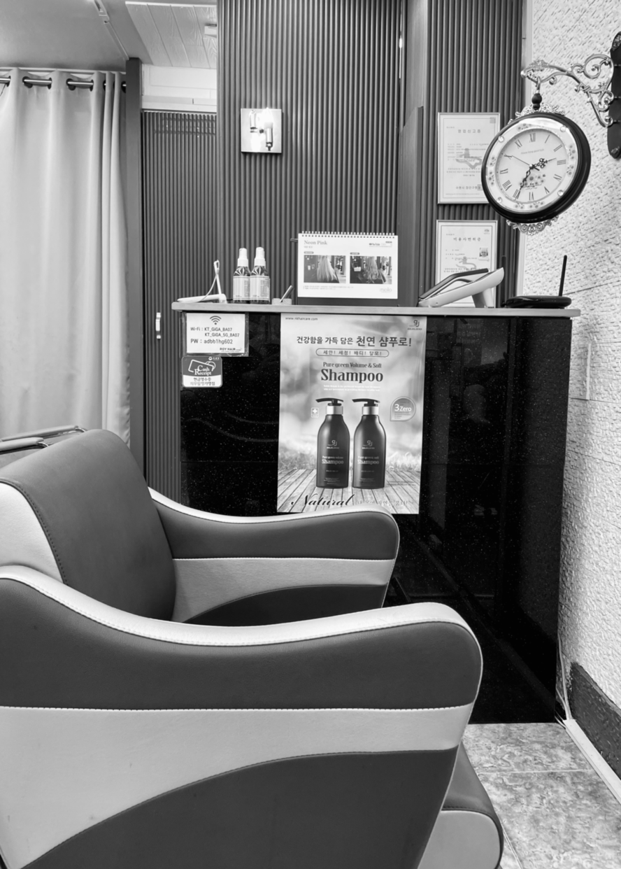 의자는 세 개이지만 손님 한 명에 미용사 한 명.